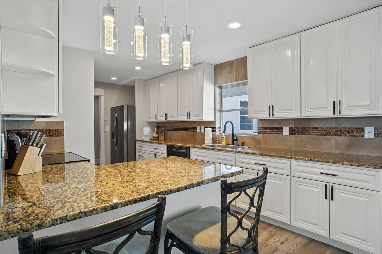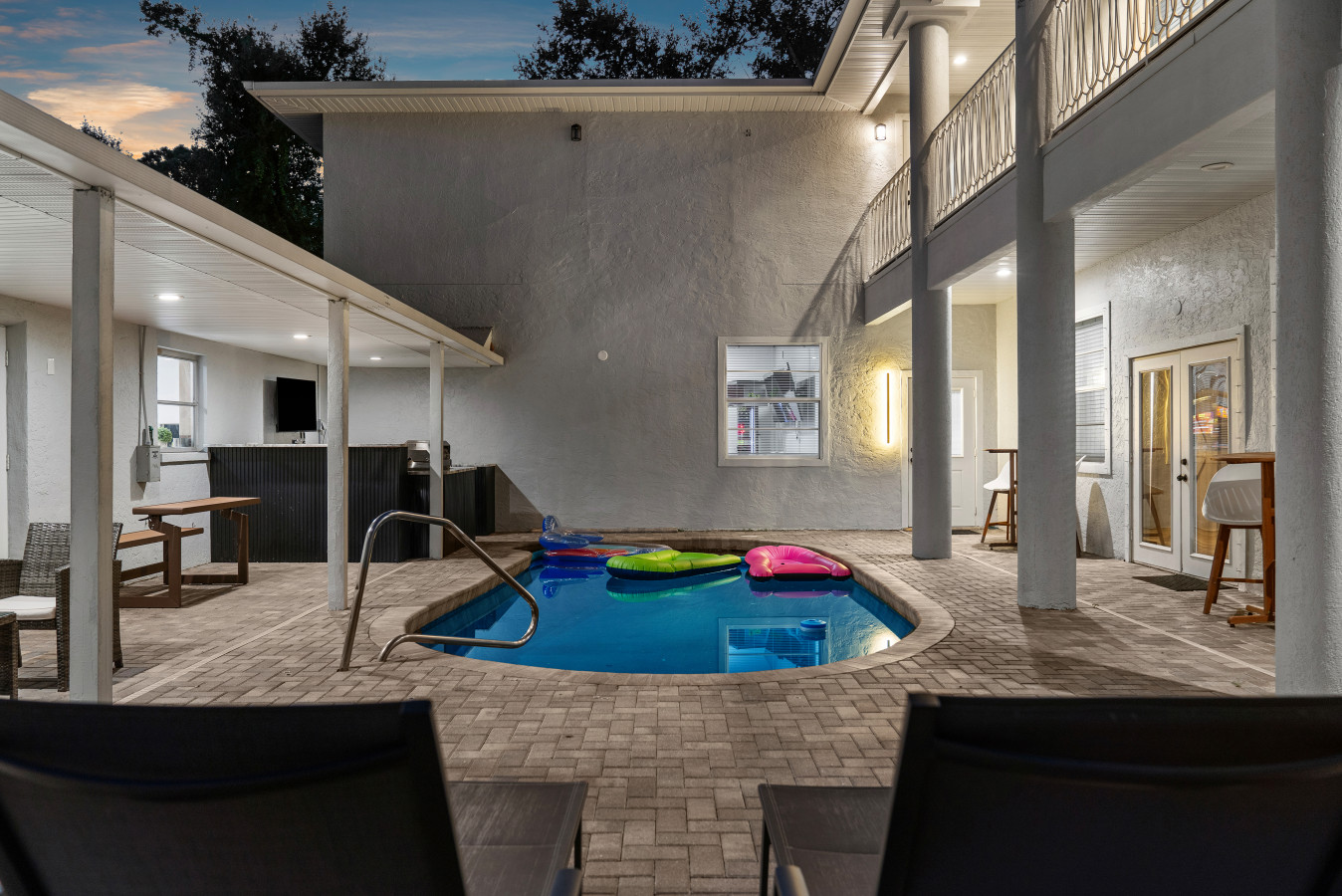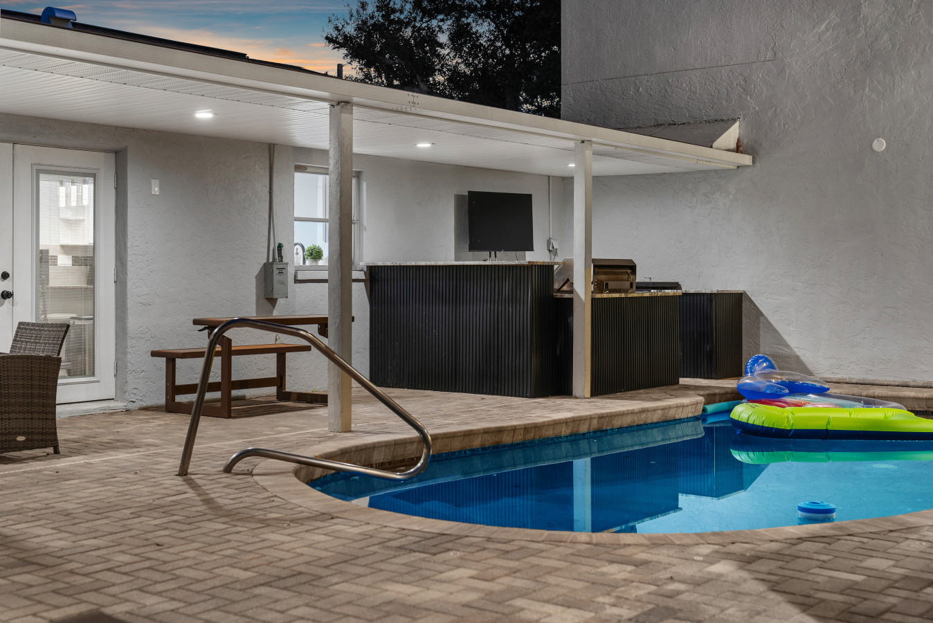 / nightWelcome to Mansion Lux, our spacious and vibrant vacation retreat, perfect for families and friends seeking endless fun and relaxation! This stunning home boasts an array of exciting features, a practice pickleball court, a full arcade room (2 nascar racing games, golden tee golf, ms. pacman, bowling, high score boxing punching machine) a private pool with outdoor kitchen, seating, ample space for sleeping 16 guests comfortably, Step inside and be greeted by a lively atmosphere where entertainment meets comfort. The home has 6 total bedrooms, 5 full bathrooms and 2 full kitchens with all cooking equipment and appliances. The home also has a heated pool ($25 a day per request). The highlight of this home is undoubtedly the arcade room, pickleball court and large ample space. Here's what you can expect during your stay: KEY FEATURES: ☀ 6 Spacious bedrooms; 2 king, 4 queens, 1 Bunk bed ☀ 5 full bathrooms; spacious walk-in showers ☀ Practice Pickleball court ☀ Full Arcade room ☀ Private pool with out door kitchen and seating ☀ Open-concept floor plan w/ a modern living room, retro dining area + full kitchen ☀ Stunning outdoor living space, w/ plenty of outdoor seating ☀ Free washer + dryer w/ detergent pods + dryer sheets provided ☀ 7 Large flat-screen HDTVs w/ popular streaming platforms (Netflix + Samsung TV) ☀ High-speed wifi (up to 365 Mbps) ☀ Dedicated workspace ☀ Air conditioning + central heating ☀ Free parking spaces on-site ☀ Free on-street parking ☀ Security cameras for your peace of mind – one at the front (Ring spotlight + doorbell), ☀ Heated pool ($25 a day per request) Accessibility: - Port Charlotte Beach Park (10 min) - Fishermen's Village (15 min) - Charlotte Harbor Preserve State Park (20 min) - Cultural Center of Charlotte County (10 min) - Riverwood Golf Club (15 min) - Peace River Wildlife Center (15 min) - Bayshore Live Oak Park (10 min) We are 25 to 30 minuets from several amazing beaches! - Englewood Beach (Has a playground and lots of parking) - Manasota Key (Crystal blue water) - Venice Beach (Has food, good for finding Sharks teeth & has a lifeguard) - Nokomis Beach - Casperson Beach - North Jetty - Blind Pass Beach - Stump Pass Beach (Has a Kayak launch) - Hot Springs Shopping Centers: - Charlotte Square (6 min) - Port Charlotte Town Center (8 min) - Village Marketplace (8 min) - Kings Crossing Shopping Center (9 min) - Cocoplum Village Shops (14 min) - Shoppes of North Port (16 min) At Mansion Luxe you will be welcomed by a comforting ambiance that will instantly make you feel at home. With an assortment of amenities designed for extended stays and plenty of space for the whole family, you can transition seamlessly into your new surroundings. *BEDROOMS & BATHROOMS* Your comfort is our top priority, and we're dedicated to ensuring that your stay is nothing short of exceptional. Whether you're here for business, leisure, or a bit of both, our meticulously furnished bedrooms offer a haven of relaxation and productivity. A total of 15 guests can fall asleep here comfortably, and feature: Bedroom 1: 1st Floor: 1 queen bed along with dual nightstands, a ceiling fan, a chest of drawers w/ 42"inch TV, closet w/ velvet hangers. Bedroom 2: 1st Floor: Ensuite bathroom, 1 king-size plush mattress along with dual nightstands, a chest of drawers, closet w/ velvet hangers. Bedroom 3: 1st Floor: 2 queen-size bed, plush mattress along with dual nightstands, closet and a chest of drawers with 42" Tv. Bedroom 4: Second Floor: 1 Queen bed along with 1 nightstand, closet and a chest of drawers with 42" Tv. and connecting bathroom to the Bedroom 5. Bedroom 5: Second Floor: 1 Queen Bed, with bunk beds, along with 1 nightstand, closet and a chest of drawers with 42" Tv. and connecting bathroom to the Bedroom 4. Bedroom 6: Second Floor: 1 Master King Bed with Ensuite bathroom along with 1 nightstand, closet and a chest of drawers with 42" Tv. and has balcony access. Room darkening shades block out the sun, ensuring a full night of uninterrupted sleep. ❋ Our luxurious bathrooms continue the theme, beautifully outfitted with chrome fixtures, a bathtub & shower, and all the essentials needed to refresh before heading to bed: ✓ Shampoo & conditioner ✓ Body soap & hand soap ✓ Hair dryer ✓ Towels ✓ Toilet paper ✓ Cleaning Products With 4,570 square feet of space all to yourself, our Mansion Lux offers comfort and peace of mind during your stay. Our cozy bedrooms are equipped with high-quality bedding and mattresses to ensure a restful night's sleep, and the bathrooms come stocked with a starter kit of toiletries. *KITCHEN & LOCAL RESTAURANTS* Feeling hungry? Rise from your sleep and treat yourself to a nourishing breakfast in our well-appointed kitchen. As the morning sun ascends, make your way to the dining table, enticed by the inviting scent of expertly brewed coffee from our advanced Keurig machine, accompanied by a selection of K-cups to suit your taste. Once you’ve boosted your mind & body with a gentle kick of caffeine, let your inner chef shine with our suite of cooking tools and appliances: ✓ Full-size refrigerator ✓ Microwave ✓ Stainless steel oven and stove ✓ Paper towel ✓ Gourmet knife set ✓ Plates, bowls, mugs, glasses, and silverware ✓ Cutting board, cooking spoon, spatulas, and other utensils Our guests will have a full access to the entire home, except for our supply closet. There is a smart lock on the front exterior door. We are always available via email, messenger, or by phone for any questions that you may have. Unique recently remodeled custom home. Quiet neighborhood located in the heart of Port Charlotte, conveniently located close to shopping, schools, interstate, SR776 that takes you to world famous beaches, and all that Port Charlotte has to offer! Explore nearby attractions like Port Charlotte Beach Park and Fishermen's Village, both within a 15-minute drive. Numerous stunning beaches are a short
