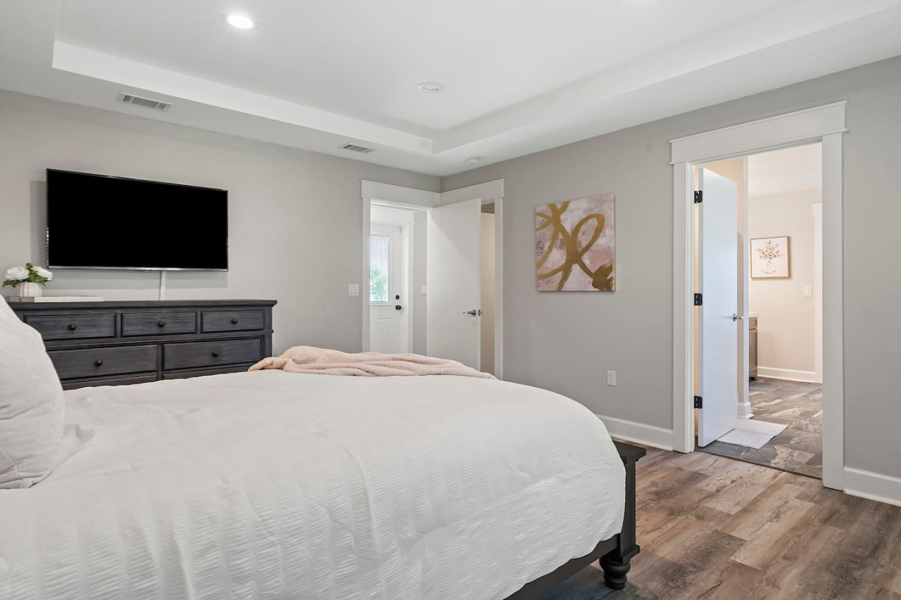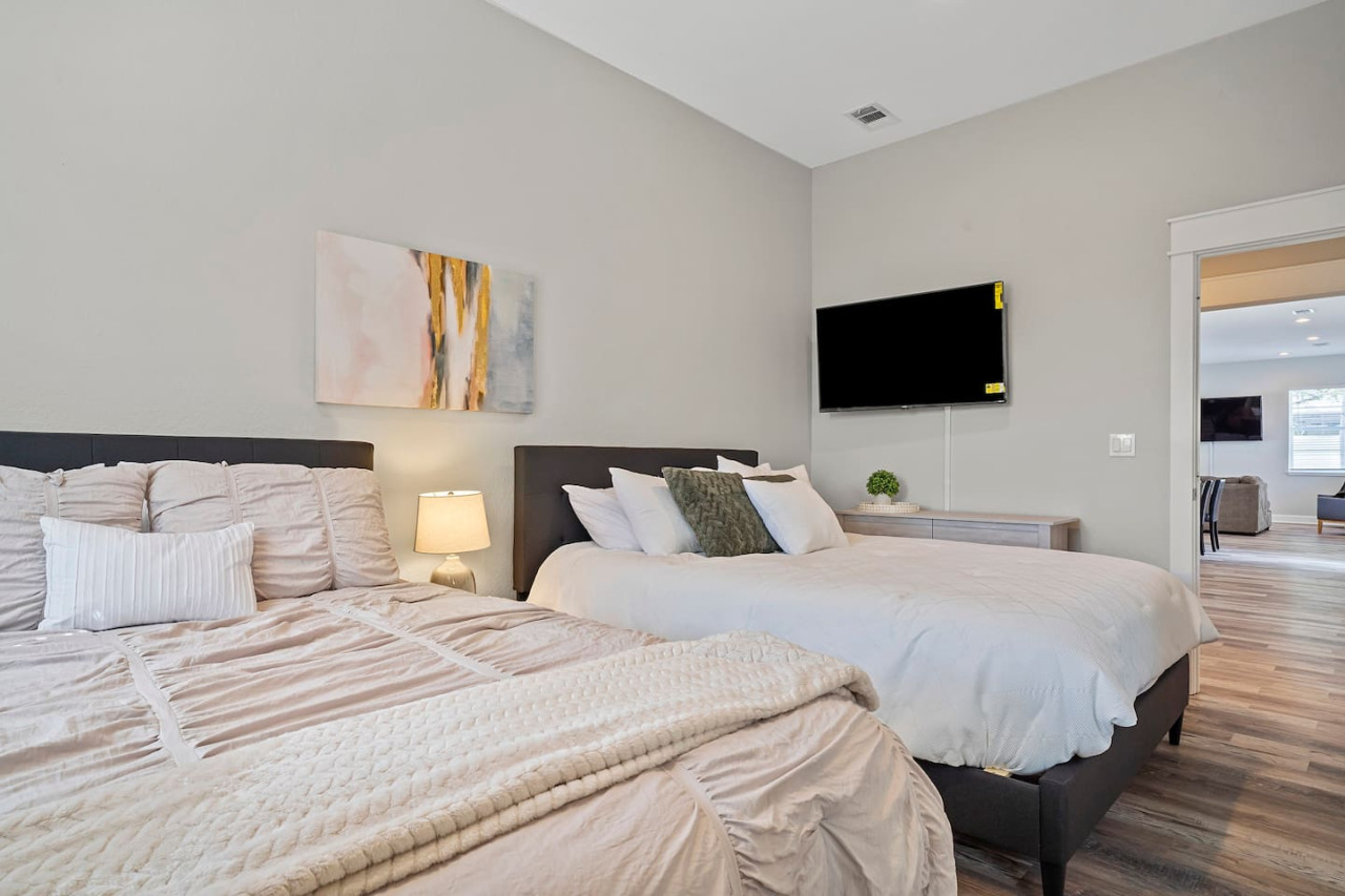 We had a great stay at this property. We were in the area for a baseball tournament and a large group of us stayed here together. The game room is awesome. The kids and adults had a blast. Kids loved the pickleball court too and were out there for hours. House had everything we needed and the rooms were very comfortable. Some nice little touches too, like the notebook where you can leave a message to the homeowner about your stay, and a beach tent, cooler and chair to use. Kitchens were well stocked with dishes, glasses, etc. Bathrooms had plenty of towels. The large kitchen/living area was great for our group. We spent most of our time there. The one negative we had was the pool. It was a little underwhelming, but that didn’t stop us from using it. Tyler was great. Any minor issue/question we had, he was very responsive and helpful. Would stay here again. Great place for large groups.